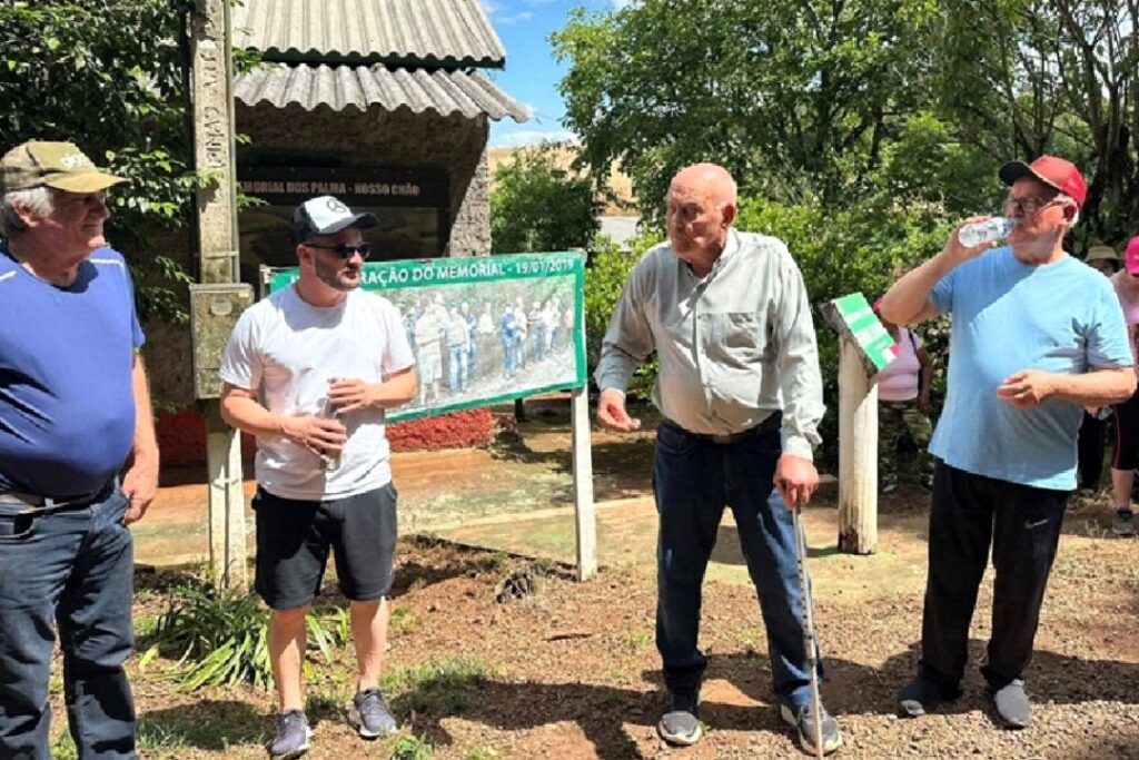 Enfim nada melhor que uma caminhada para preencher o propósito. Participaram da caminhada eco lógica todas as idades, até demonstrando garbo de pertencimento como eu nunca havia presenciado. Por volta das 14h, cento e oitenta participantes chagavam à sede do memorial, onde foram recebidos com boas-vindas por mim e meu irmão José Elói (O Zeca), proprietário da área. Face ao grande número de participantes. O grupo foi dividido em dois para que coubessem no auditório. Enquanto um grupo visitava a área do memorial, o outro assistia a uma palestra que versava sobre o porquê imigraram para o Brasil, o histórico da família cuja árvore genealógica tem 400 anos de história e a própria unificação da Itália e seu romântico idioma. Nem todos sabem que a Itália é um país novo, de língua neolatina moderna e muito bem elaborada.
