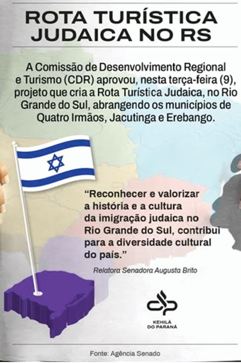 Nessa semana a Rota Turística Judaica foi aprovada como de interesse federal pelo Senado Federal.