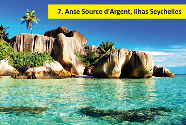 Seychelles é um arquipélago formado por 115 ilhas no Oceano Índico, na África. Lá está localizada a Praia Anse Source d’Argent, na pequena ilha de La Digue. Aliás, vale dizer que esta praia é considerada uma das mais belas do mundo. As pedras graníticas, a areia branca, os tons azuis da água e a vegetação exuberante são o cartão de visita do lugar.