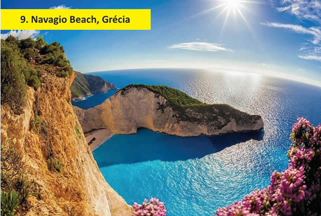 A Navagio Beach está localizada na ilha de Zakynthos, na Grécia, e tem um cenário impressionante devido à cor das suas águas e pelo fato de ser cercada por penhascos de até 180 metros. O acesso a essa parte da Grécia acontece somente por barco e, sem dúvidas, é um passeio inesquecível!