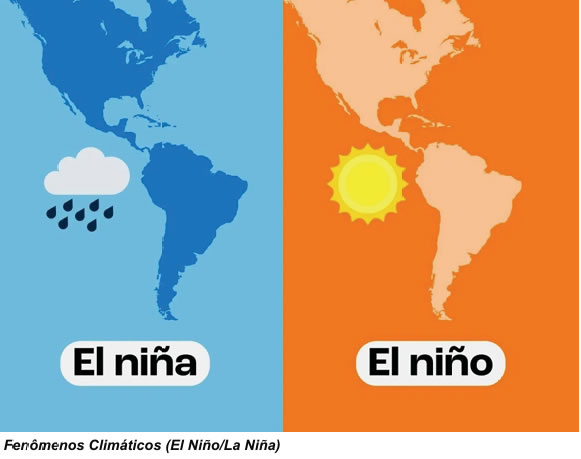 Fenômenos Climáticos (El Niño/La Niña): Oscilações na temperatura do Pacífico, como o El Niño, alteram os padrões de chuva, muitas vezes ,concentrando volumes acima da média no Sudeste e outras regiões brasileiras.